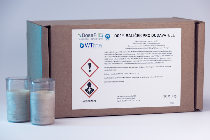 DR1™ je přípravek ve formě pevné látky. Je speciálně navržený jako komplexní inhibitor koroze a vodního kamene. Produkt je uzavřen ve vodě rozpustné kapsli z PVOH (polyvinylalkohol) a je vhodný k ošetření topných soustav i s hliníkovými komponenty.
