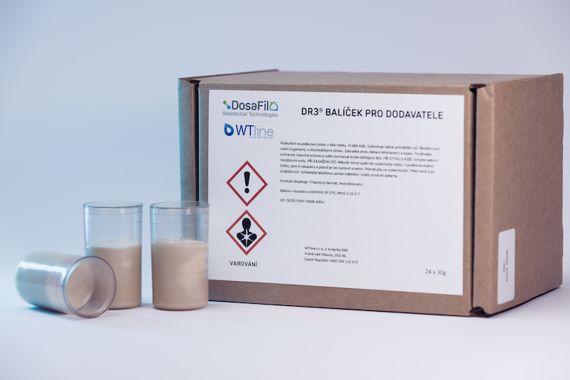 DR3™ je přípravek ve formě pevné látky určený pro intenzivní čištění v topných a chladicích systémech. Produkt je uzavřen ve vodě rozpustné kapsli z PVOH (polyvinylalkohol).